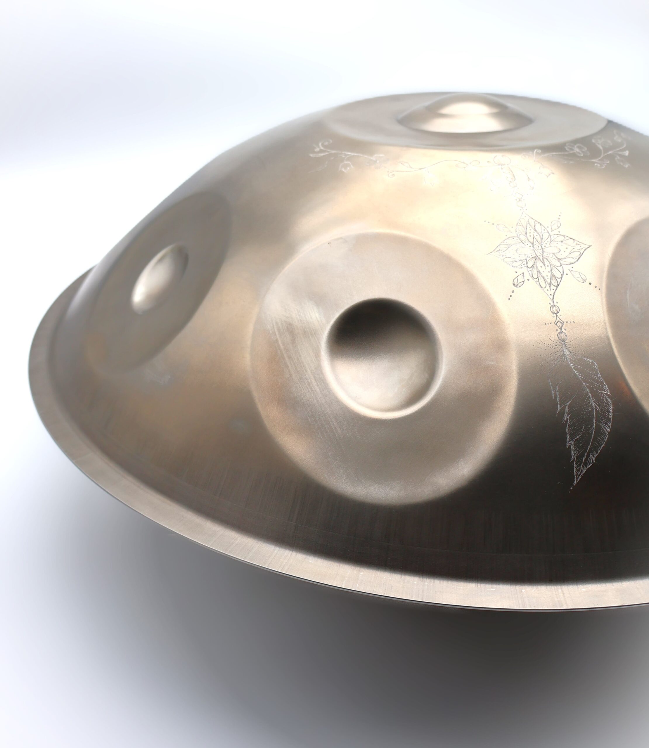 Découvrez ce handpan de 10 notes en 440hz et minutieusement gravé à la main. Visionnaire, éclatant, une tonalité légère et décontractée, de belles mélodies qui viennent aisément, nous laissant une sensation douce et chaleureuse d’une amitié précieuse, faite de confiance et d’appréciation. Nous rappelant que tout avance dans la bonne direction.