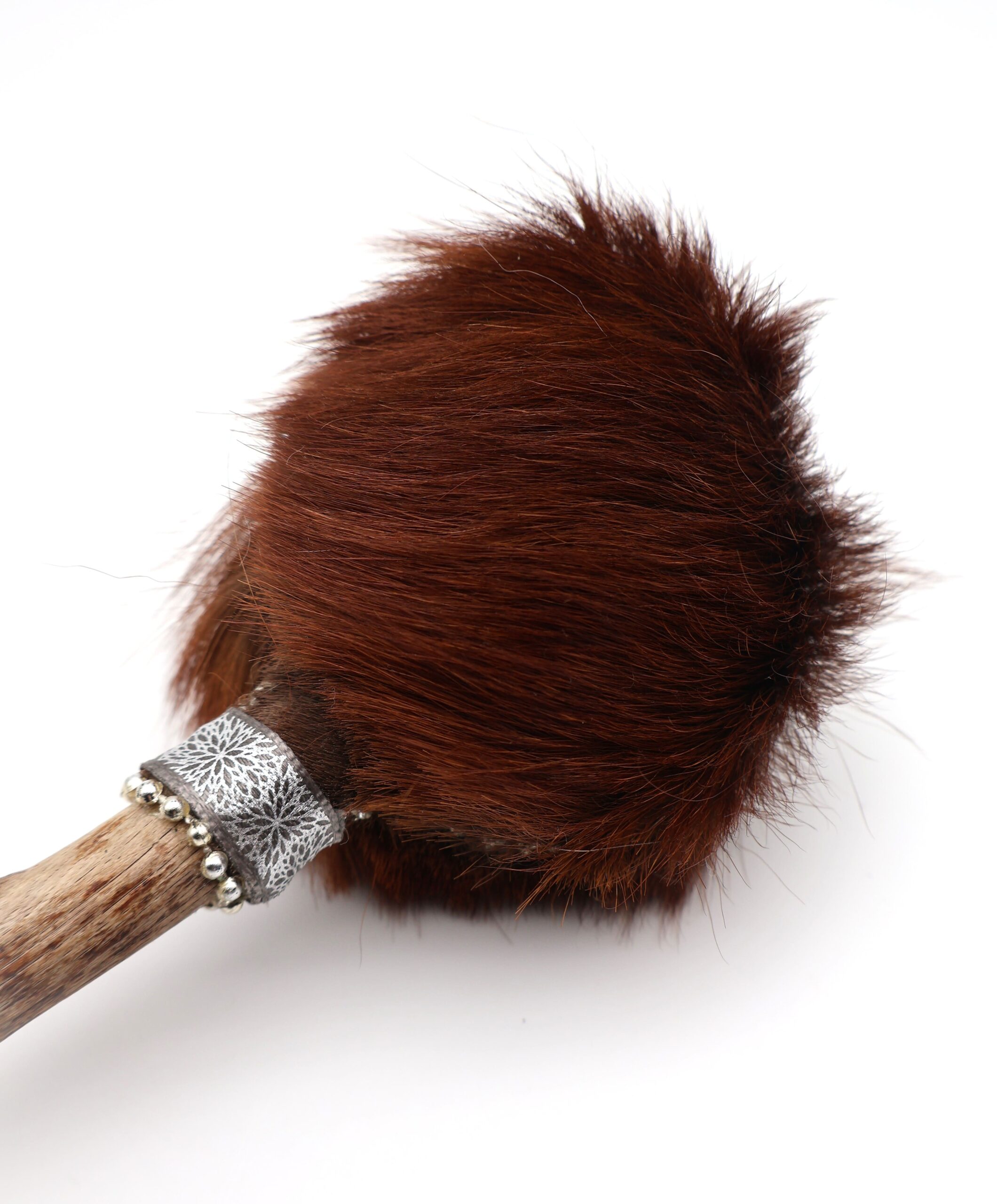 Confectionné avec une peau de cheval et contenant des pierres d’améthyste à l’intérieur, il produit un son qui accompagne les pratiques méditatives, énergétiques ou rituelles.