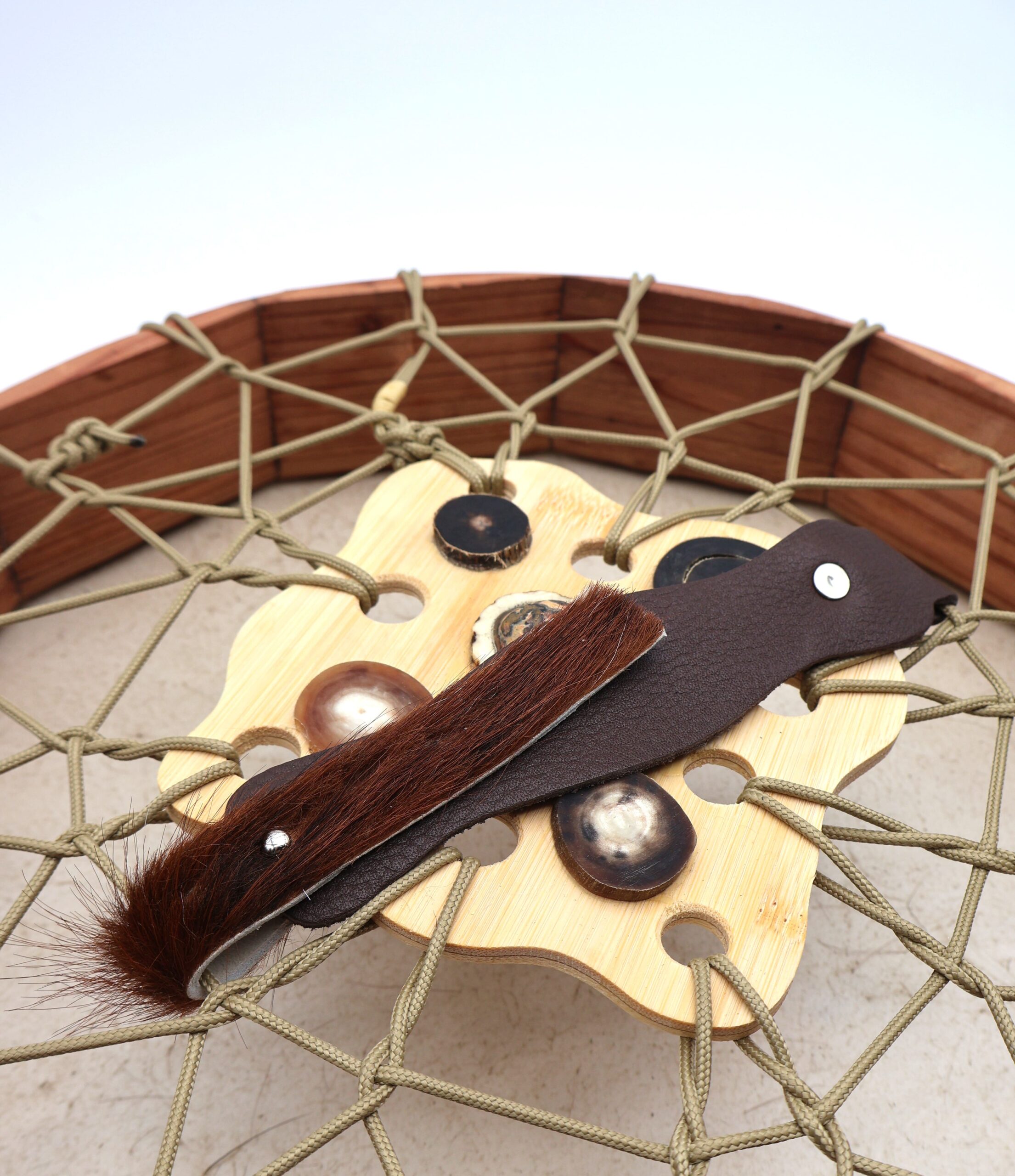 Ce tambour chamanique en peau de biche est une œuvre unique réalisée par Gabriel Oko, artisan renommé pour son travail exceptionnel à partir de matériaux naturels nobles. Chaque création est guidée par une profonde connexion à la nature et aux traditions ancestrales, faisant de ces tambours bien plus que de simples instruments : de véritables compagnons spirituels.